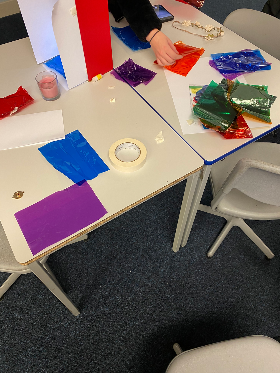 We arrived at 8:20 and set up, lay the items out, logged in to the computer and opened the powerpoint. Pupils arrived at 8:40. Because it was a new lesson, it took a while for all of them to arrive. We read through the presentation we'd made, taking it in terms when it came to the three sections of Subjects, Lighting, and Composition. We were very good and sharing the talking load and chipping in if something was missed. We divided the class into two groups of 3 because at the start it was only 6 pupils. We instructed the pupils with the task of making studios out of boxes and paper. Emily and I each went with a group. We saw over them experimenting with photographing the objects, offered advice and tips along the way. The pupils were really engaged and receptive. Encouraging them was fun and easier because of this. The pupils were creative, playing with lighting, positioning, and subjects. They moved on to using the standing lights and pink backdrop, even changing it to orange upon request. They moved on to multiple subjects in the frame without prompt - showing interest and experimentation. We didn't have a break because they were into shooting so much, we did wrap up the lesson at 10:10 which gave us time to debrief - asking them to think about one thing they enjoyed learning and any techniques they want to learn throughout these sessions so we can be sure to teach them and John informed the pupils about the google classroom that the pupils were asked to upload any images they are happy with and want to share - allowing me and Emily to see them and for us as a class to reflect on them next lesson.